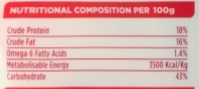 Meat & Liver(55%)(Chicken,Beef Meat & Liver-25%); Molasses; Vegetable Coproducts( Parsley); Minerals & Vitamins (including calcium, phosphorus, zinc, iron, Na, Cl, K, Mn, Cu, I & Vitamins A, D, E, B1, B2, B3, B5, B6, B9, B12 ); Natural Flavours* and Antioxidant